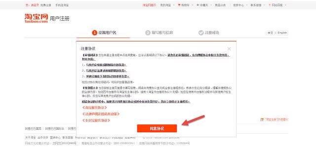 Đầu tiên, bạn cần chấp nhận các điều khoản khi đặt mua hàng trên Taobao để có thể thực hiện các bước đăng ký tiếp theo.