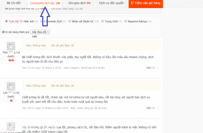 Chú ý: ở đây là những comment thật vì trên taobao chỉ những người đã thực hiện giao dịch mua sản phẩm đó mới đc đánh giá về nó