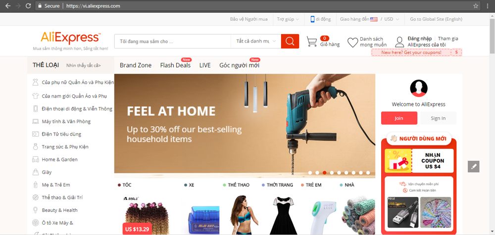 Các mặt hàng kinh doanh trên Aliexpress.com